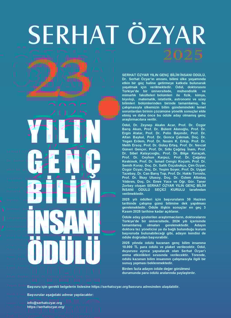 2025 YILI SERHAT ÖZYAR YILIN GENÇ BİLİM İNSANI ÖDÜLÜ