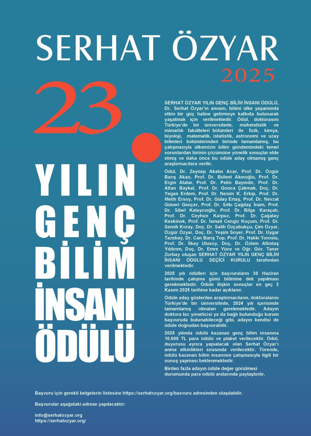 Ödül, ülkemizde gerçekleştirilmiş doktora çalışmaları içinden, ödülün amaç ve ölçütleri açısından bir seçme ve ödüllendirme sürecidir. Ödüle aday gösterilen çalışmalar, aday gösterilen tezlerin konusuyla ilgili uzman öğretim üyelerinin hakemliğine başvurularak değerlendirilmektedir. Hakemlerin belirlenmesinde, söz konusu tez çalışmasının jürisinde yer almış, adayın üniversitesinden olmayan juri üyesi yanı sıra adayın üniversitesi dışından hakemlerin seçilmesine özen gösterilir. Aday ile çıkar ortaklığı ya da çıkar çatışması olan kişiler hakem olarak belirlenmez. Hakem değerlendirmelerinin karşılaştırılarak değerlendirilmesi sonucunda ödülün verileceği çalışmalar belirlenmektedir. Seçici Kurul çalışmaları, bu yönüyle farklı alanlardaki bilimler çerçevesinden yapılan bir karşılaştırma sürecidir. Serhat Özyar Yılın Genç Bilim İnsanı Ödülü Seçici Kurul’u farklı alanlardan öğretim üyelerinden oluşmaktadır. Seçici Kurula üye kabul edilmesi ya da üyelerinin üyeliklerinin sona erdirilmesine Seçici Kurul toplantılarında karar verilir.