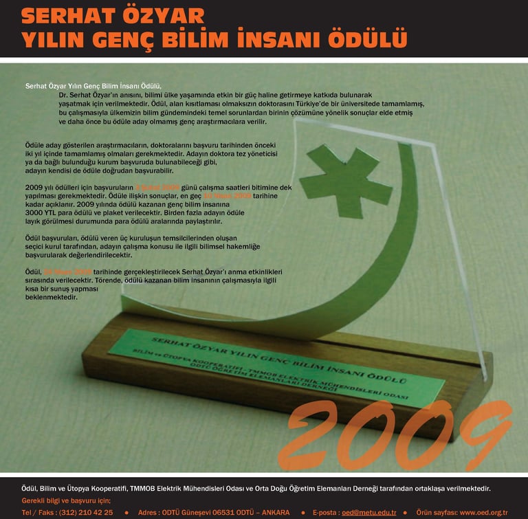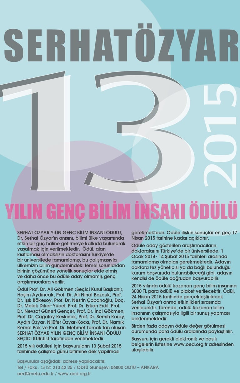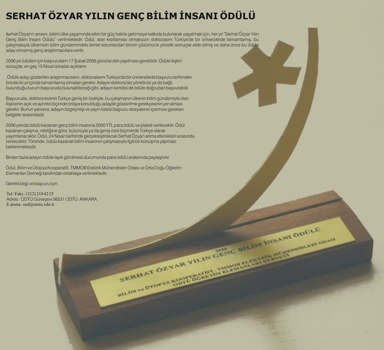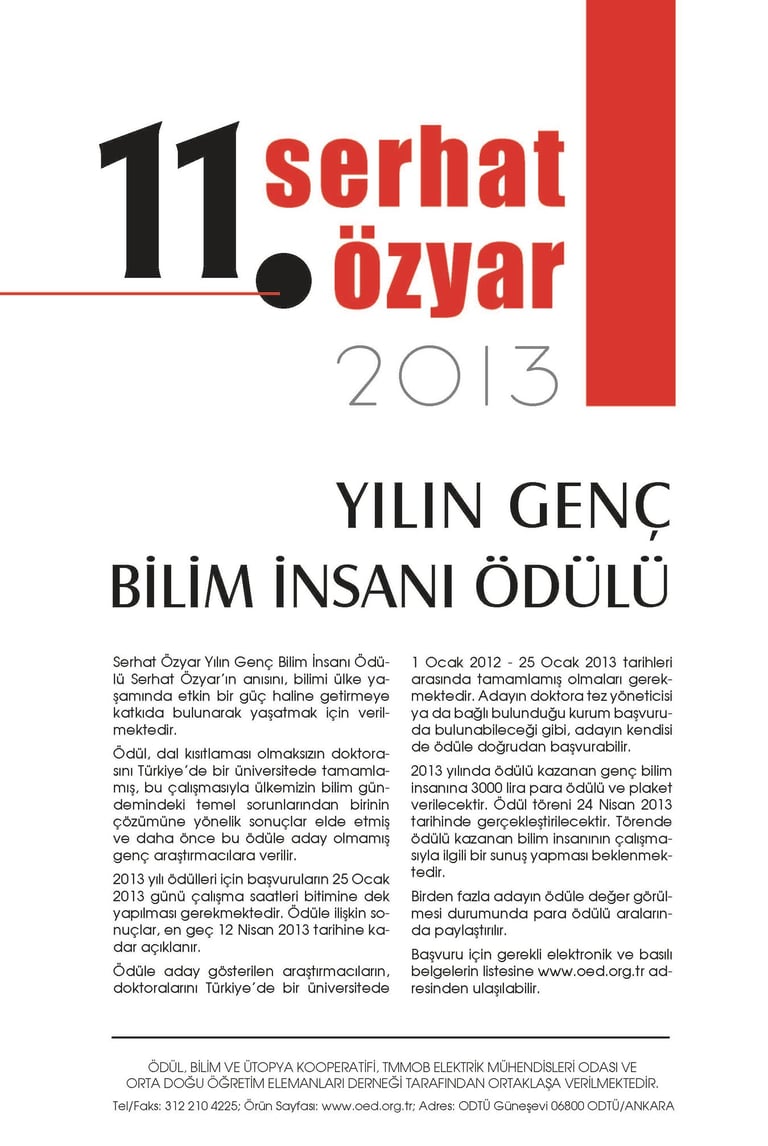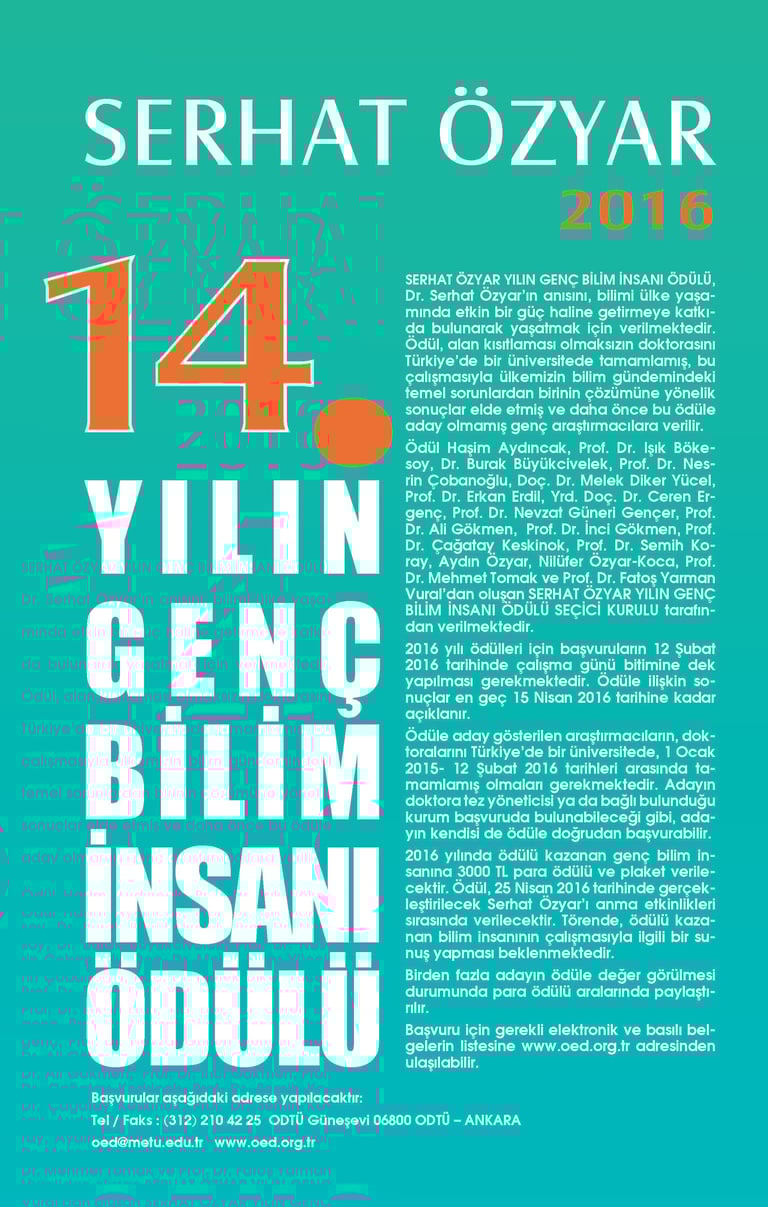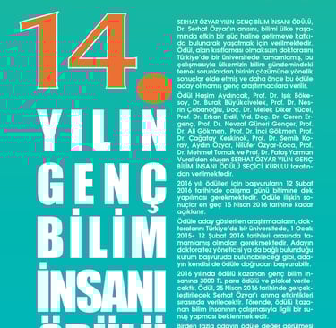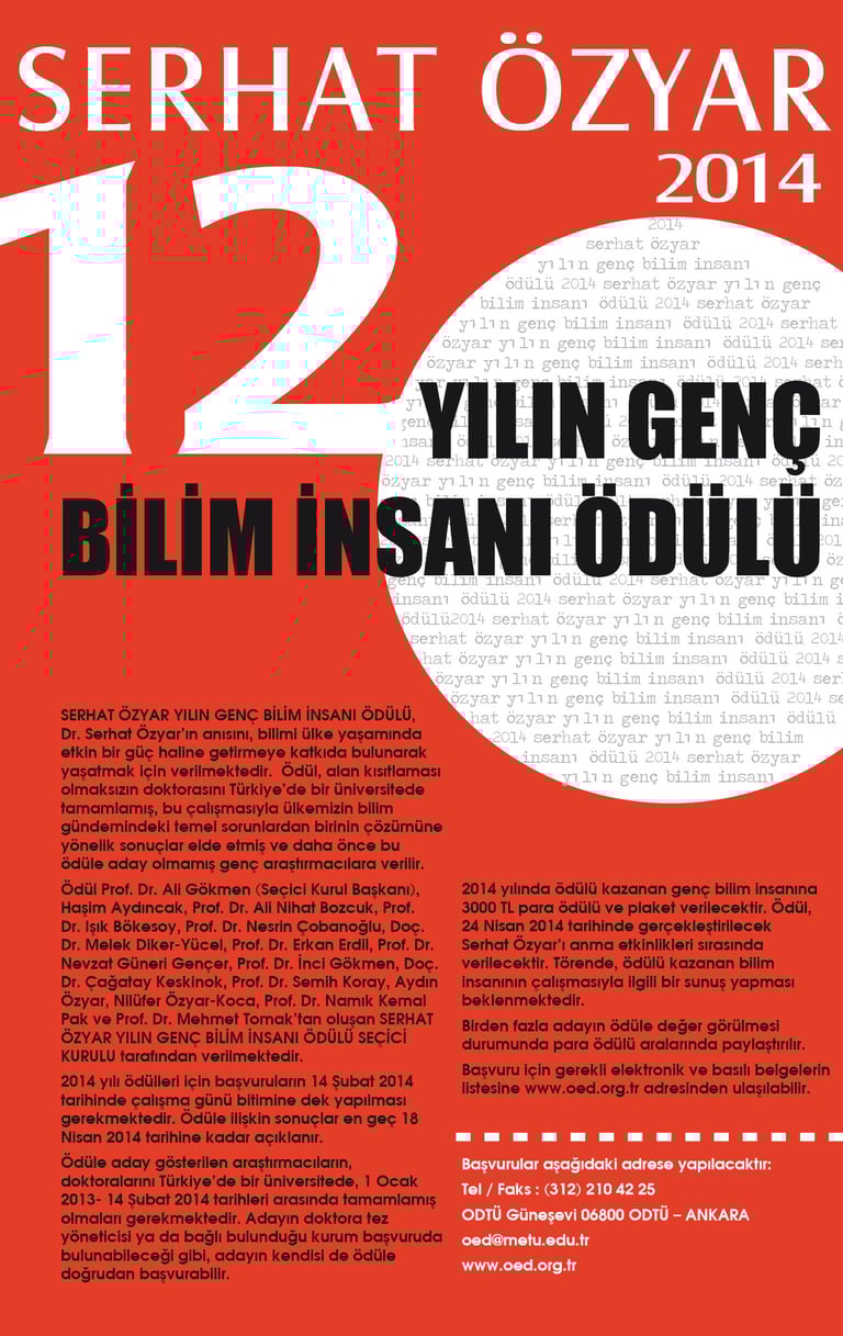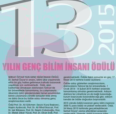 SAYILARLA SERHAT ÖZYAR YILIN GENÇ BİLİM İNSANI ÖDÜLÜ